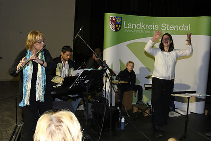 Im Beetzendorfer Park versammelten sich etwa 140 Menschen, um zu singen. Die Kantorin Cornelia Jung leitete folgende Chöre und Instrumentalgruppen: