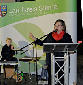 Dr. Susanna Kramarz moderierte das Event "3. Oktober - Deutschland singt" in Stendal. Foto: Dieter Bandau.